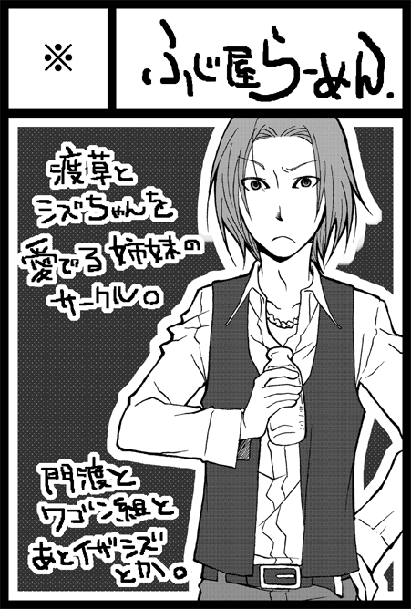 6月シティデュラプチ出るよ!後で入金してくる。門渡中心で合同で門渡とワゴン組本と藤瀬個人で何故かイザシズ本出すよ。しかもイザシズのネームの方が先出来ちゃったよなんてこったい(ヲイ)一生で一度の良い機会だと思ってさ…。
