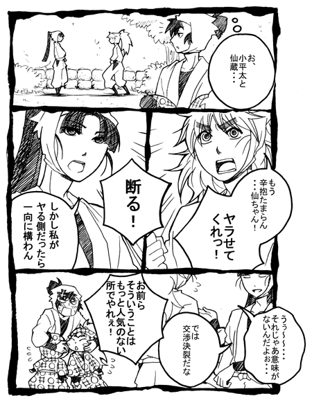 もうこへ仙が並んでるだけで嬉しいし、身代わり厳禁の小平太代わりの喜三太が「仙ちゃん」って呼んでるだけで大いに萌えてしまう程には飢えています(残念)